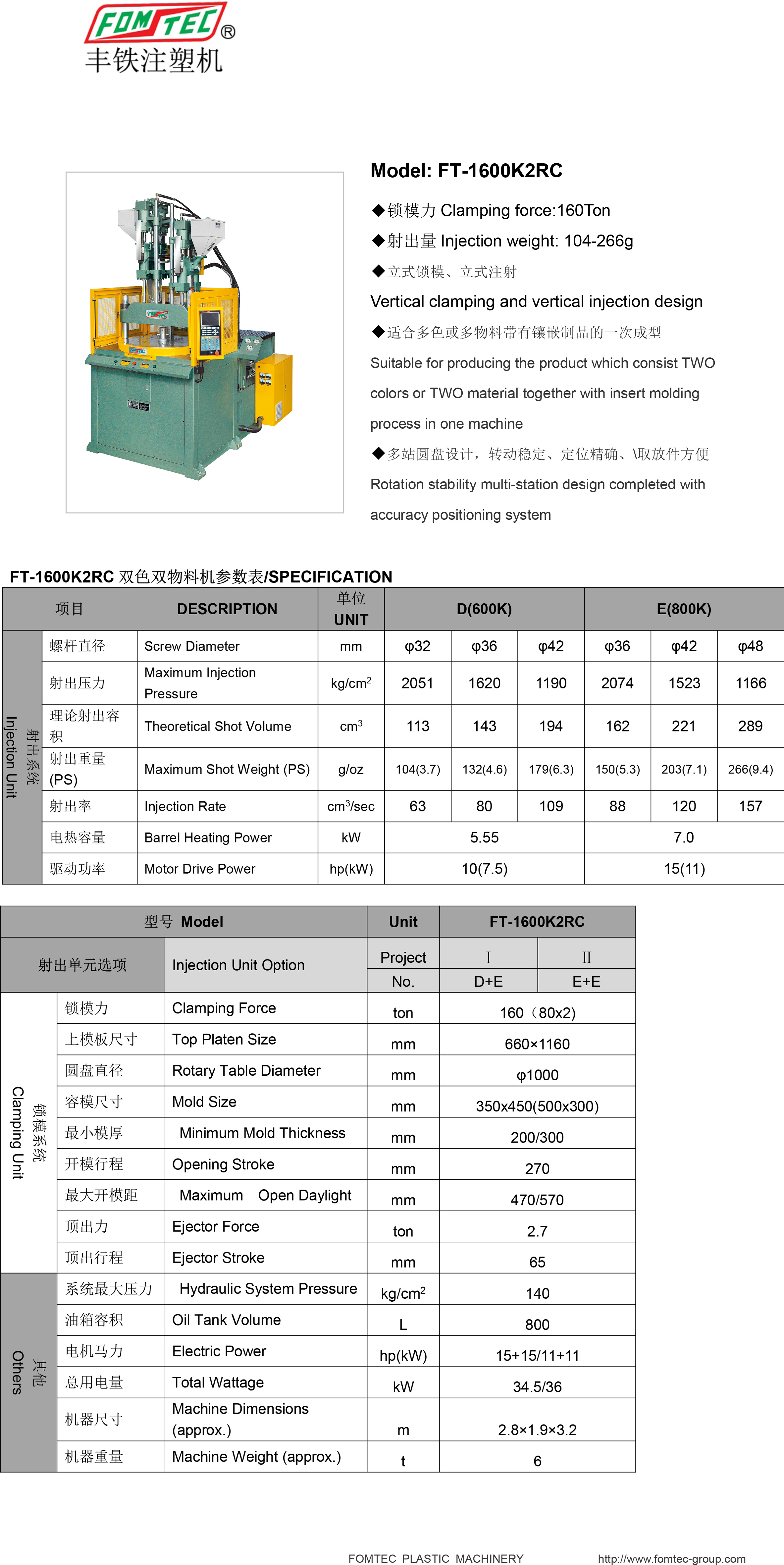 1、立式鎖模、立式注射機(jī)構(gòu)設(shè)計(jì),適合雙色或雙物料帶有鑲嵌件制品的一次成型